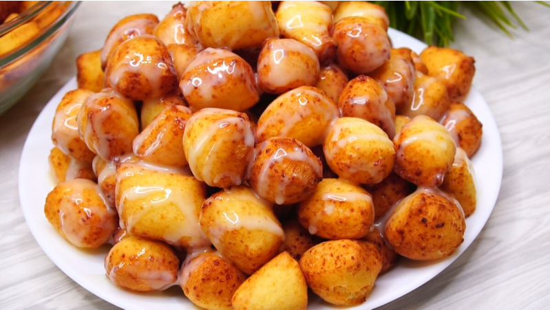 В сковороде разогревается растительное масло. Заготовки обжариваются на среднем огне до золотистого цвета. Выложите готовые шарики на бумажное полотенце, чтобы избавиться от излишков масла. Это лакомство можно полить сгущенкой, шоколадом или посыпать сахарной пудрой – оно не оставит равнодушным ни одного гурмана, как в горячем, так и в холодном виде.