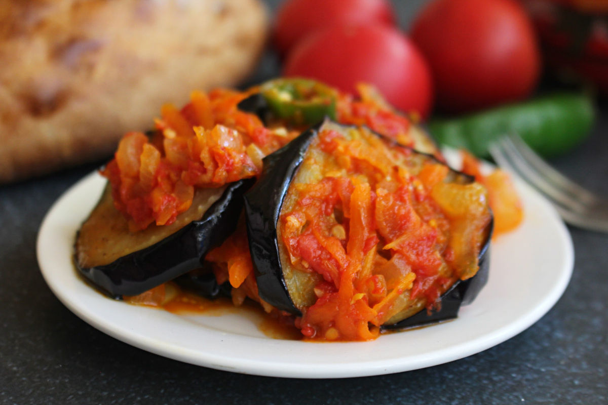 Эта удивительно вкусная закуска непременно порадует истинных ценителей жареных баклажанов. Она может быть подана как в горячем, так и в холодном виде — в любом случае, она доставит истинное удовольствие! Баклажаны получаются сочными, слегка острыми и яркими, с ненавязчивой кислинкой. Для приготовления можно варьировать количество овощей: добавлять столько моркови или лука, сколько хочется. Острый перец можно добавлять по вкусу, а если есть желание — и порадовать себя зеленью. Несмотря на то, что количество ингредиентов довольно велико, эти жареные баклажаны поистине удивительные: они становятся еще более вкусными после короткого времени на хранении.