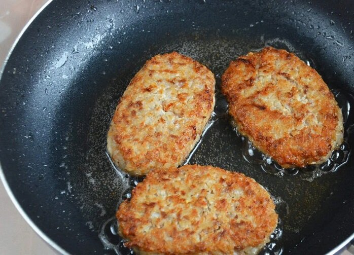 5. Из смеси сформируйте небольшие котлеты, положив в каждую начинку по желанию.