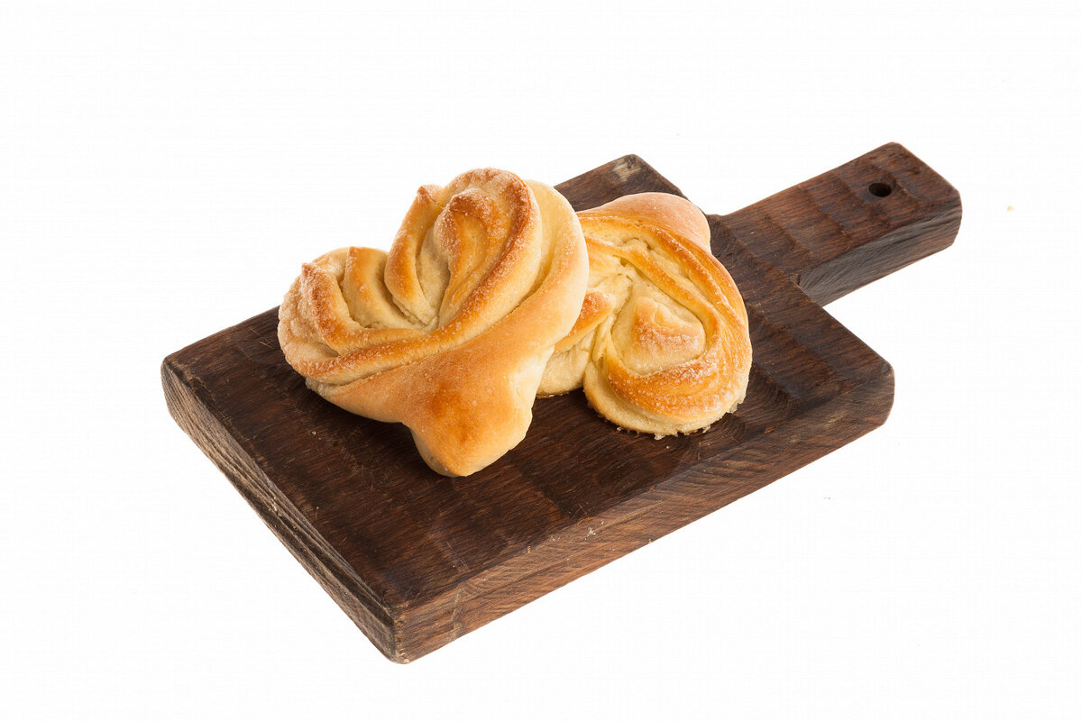 В глубокой миске соединить тёплую воду, 100 г сахара и дрожжи. Оставить смесь на 10 минут, пока не появится пена, что указывает на активацию дрожжей.Добавить просеянную муку и 40 г мягкого сливочного масла. Замесить тесто с помощью миксера с насадкой для замеса. Тесто должно легко отходить от стенок чаши. Готовое тесто выложить на поверхность, сформировать шар и положить его в миску, смазанную растительным маслом. Накрыть пленкой и оставить в тепле на 2 часа.Когда тесто поднимется, обмять его на припудренной мукой поверхности и разделить на 10 равных частей. Каждую часть раскатать в прямоугольник, смазать растопленным маслом и посыпать оставшимся сахаром. Скатать в трубочку, затем сложить пополам и сделать надрез на сгибе, чтобы получить форму сердца.Выложить подготовленные плюшки на противень с бумагой для выпечки, оставляя между ними 3-5 см. Накрыть полотенцем и оставить на 30 минут для расстойки.Разогреть духовку до 200 градусов. Выпекать плюшки в течение 15-20 минут до золотистой корочки. Готовые изделия остудить на решетке.Приготовьте эти замечательные плюшки и удивите своих близких! Поиск новых вкусных рецептов также можно продолжить на ресурсах по кулинарии.