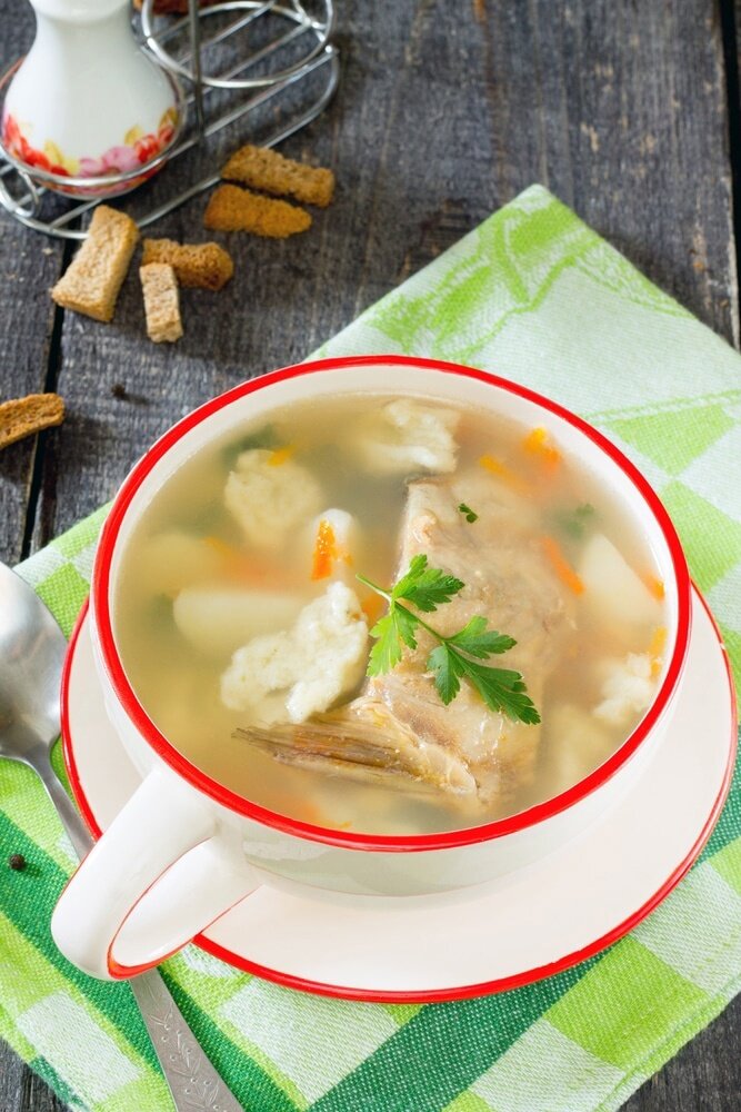 Как только суп закипит, в него добавляют нарезанный картофель и пассированную морковь. Варить нужно еще около 10 минут. Затем с помощью чайной ложки аккуратно вводят клецки, которые начинают всплывать. Как только они достигнут поверхности, кипятят еще 5 минут и отключают плиту. Перед подачей рекомендуют добавить мелко нарезанную зелень, которая добавит свежести и аромата готовому блюду, пишет канал.