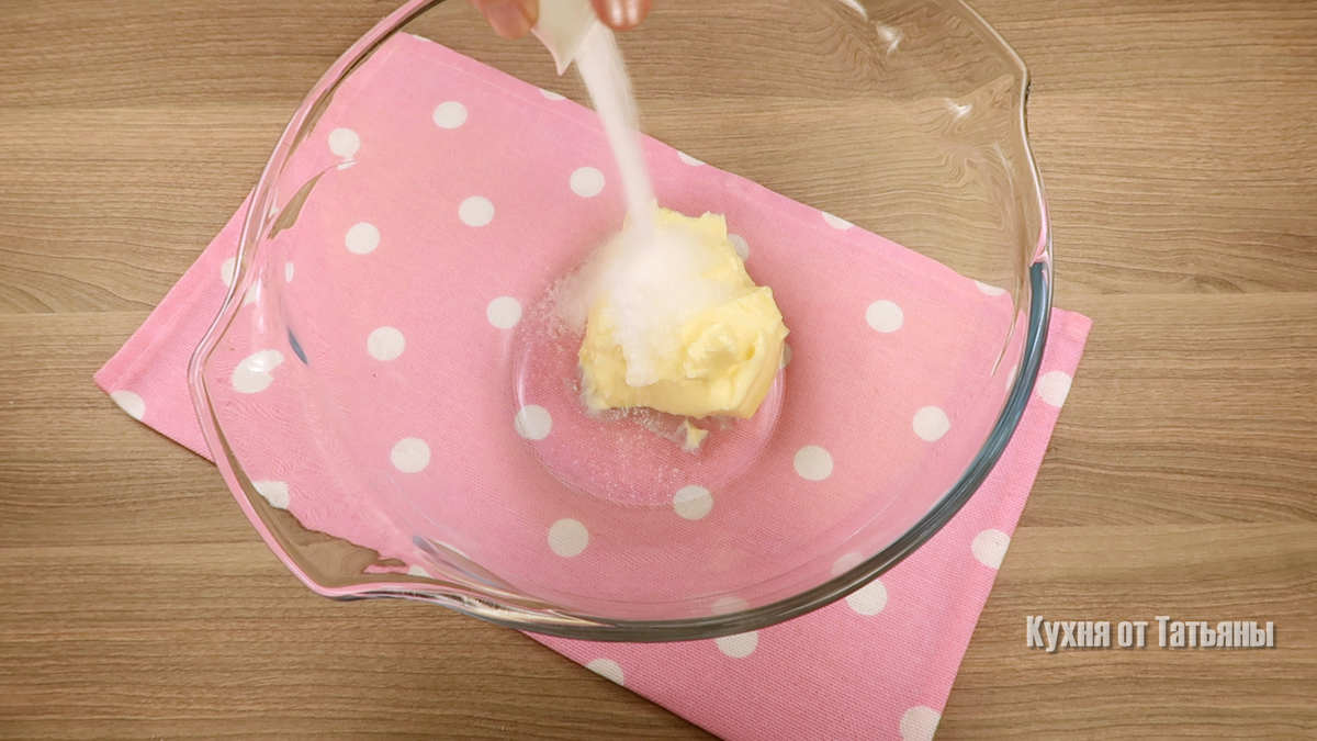 1. В глубокой миске следует смешать размягченное сливочное масло с щепоткой соли, ванильным сахаром и сахарной пудрой, добавив, по желанию, мелкий сахар. Это создаст основу вашей воздушной массы.