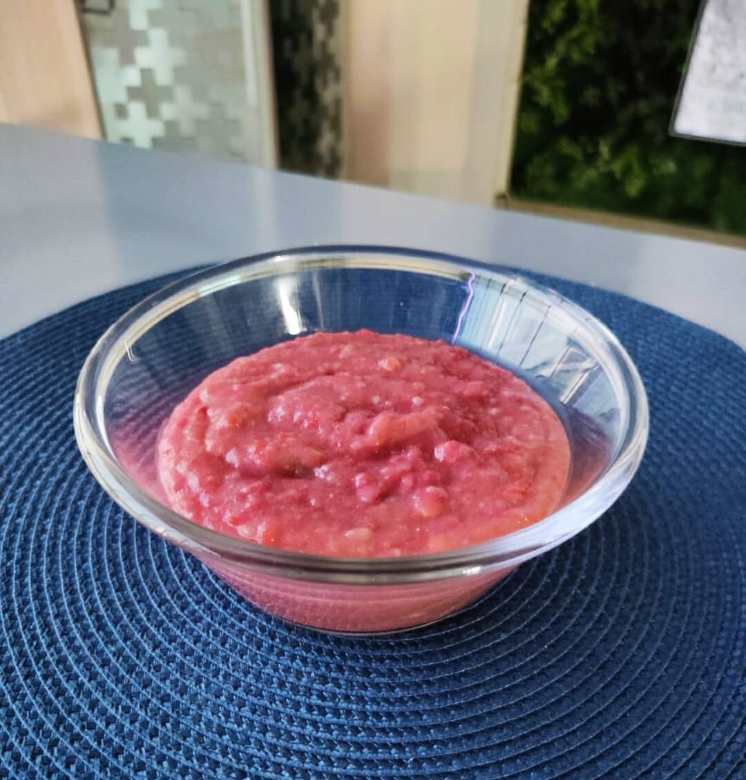Приготовление: 1. Заварить ржаную муку кипящей водой. 2. Добавить протертую с сахаром калину и тщательно перемешать. 3. По вкусу можно добавить мед или сахар, а также заменить калину на чернику или малину.