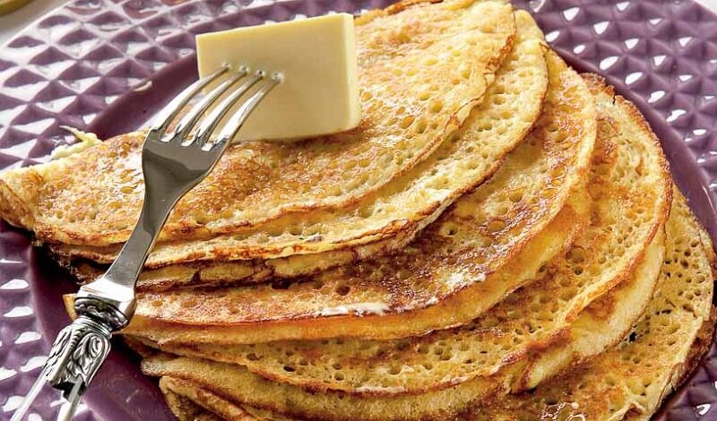 Дрожжевые кружевные блины со сливками