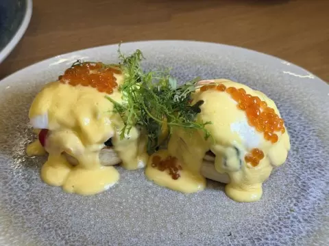 - Минский Бенедикт с лососем и красной икрой на пышном маффине – 45 BYN. Этот завтрак действительно «попадает в десяточку»!