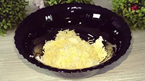 3. Сыр также натрите на мелкой терке и добавьте в салатник. Для разнообразия можно использовать плавленый сырок.