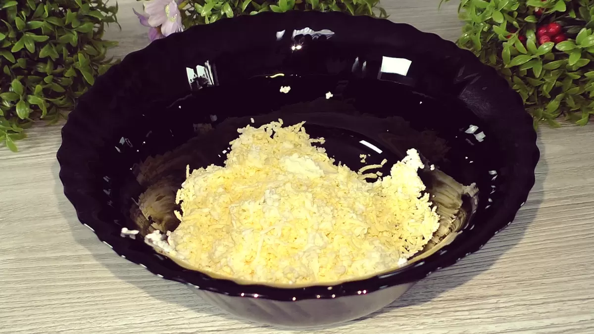 2. Натрите холодные яйца на мелкой терке.
