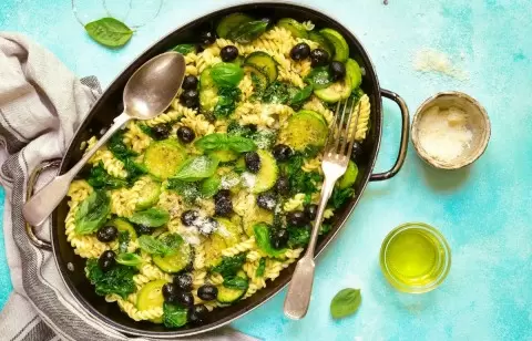 В жаркие летние дни не хватает легкости и свежести в еде. Паста с кабачками, маслинами и базиликом станет отличным выбором для наслаждения обедом на пляже или в саду. Это блюдо легко готовится и может подаваться как горячим, так и при комнатной температуре, а на следующий день оно лишь улучшит свои вкусовые качества.