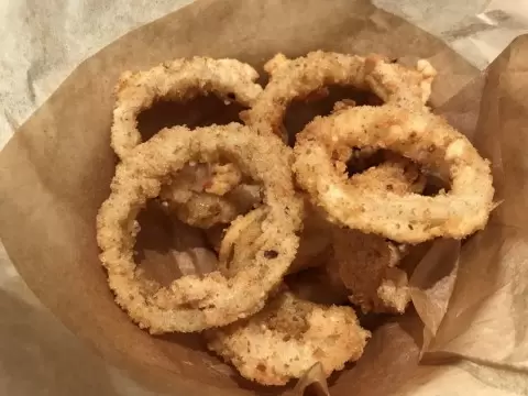 Фритюрное масло разогревается в сотейнике, и кольца погружаются в горячую жидкость по одному, чтобы избежать их склеивания. Когда луковые кольца принимают золотистый оттенок и становятся хрустящими, их вынимают, выкладывают на бумажное полотенце, чтобы убрать лишнее масло.
