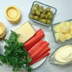 Приготовление этих тарталеток не займет много времени, а результат впечатлит любой гурман. Для начала необходимо нарезать крабовые палочки небольшими кубиками. Затем сыра следует нарезать также, чтобы все ингредиенты были в одной стилистике. Консервированные ананасы стоит нарезать мелкими кусочками, а оливки — не слишком крупно, чтобы создать гармоничное сочетание по текстуре.