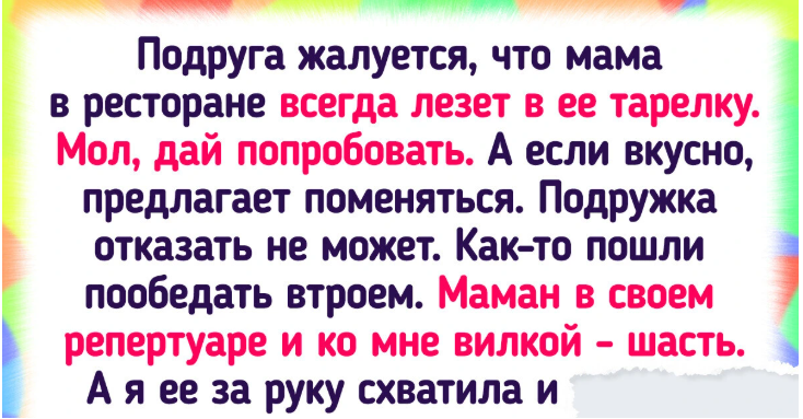 Мы все ощутили, как еда может стать причиной недопонимания или, наоборот, объединить людей за столом. Эти истории — лишь небольшая часть из множества курьезных ситуаций, связанных с пищей, которая становится не просто частью рациона, а самой настоящей игрой в человеческие отношения.