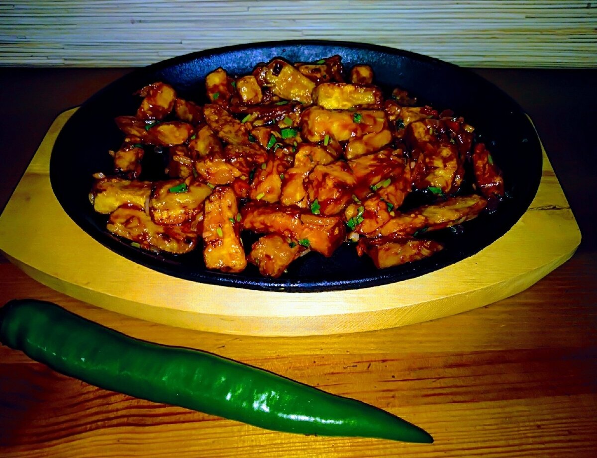 Следующий этап — обвалка баклажанов в крахмале и жарка во фритюре до золотистой корочки. Важно делать это порционно, чтобы кусочки не слипались. На сковороде следует обжарить лук, добавить острый перец и чеснок, а затем добавить жареные баклажаны. Противень с соусом, состоящим из соевого соуса, кетчупа лечо, сахара и уксуса, завершает композицию. Весь процесс требует внимания, но результат стоит того!