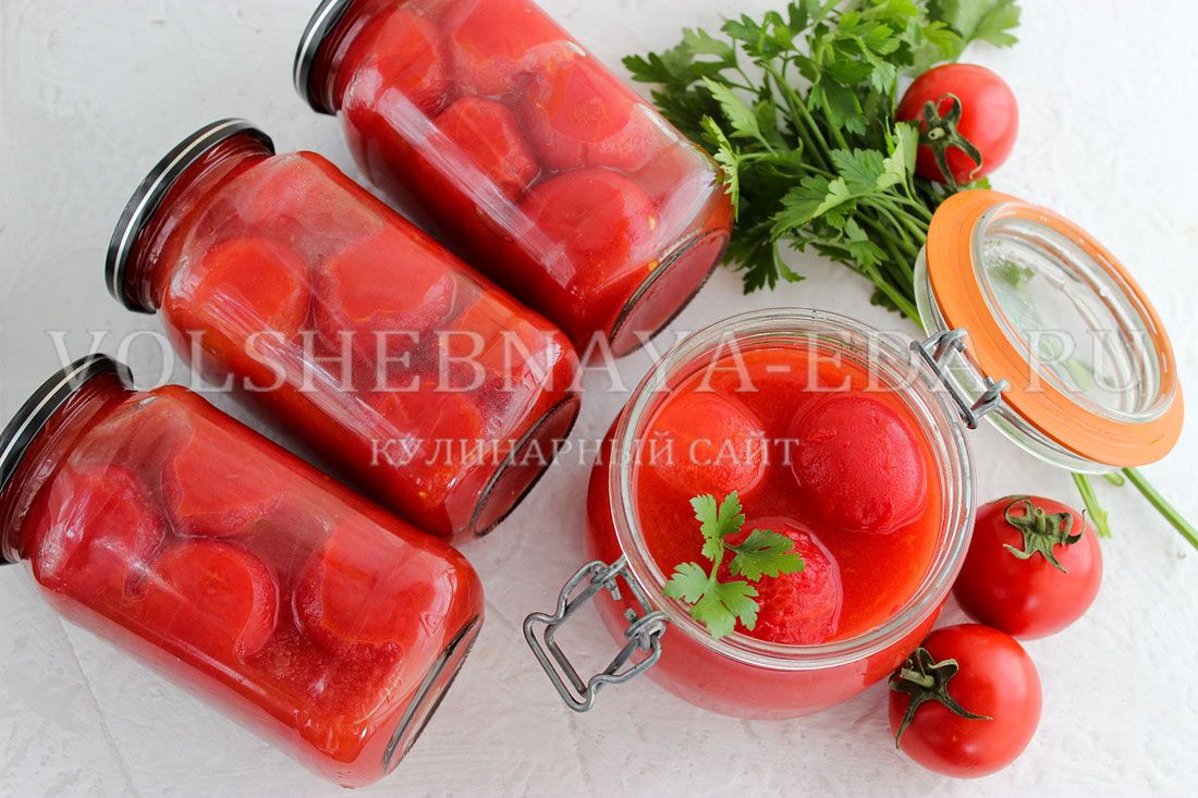Перебрав помидоры для соуса, стоит использовать около 1 кг, переработав их с помощью соковыжималки. Полученный томатный сок кипятят, добавляя при желании щепотку соли и специй, чтобы завершить процесс приготовления. Наполненные сверкающим соусом банки подвергаются стерилизации в горячей воде на 10-15 минут в зависимости от объема упаковки.