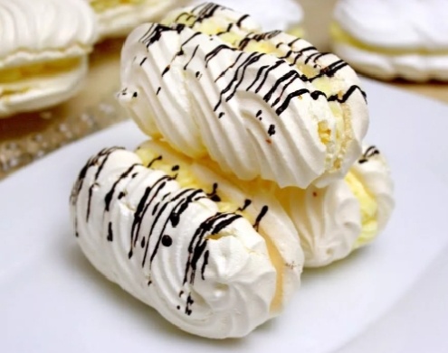 Приготовление безе: Холодные белки взбиваются с лимонной кислотой на малой скорости. Постепенно увеличивайте скорость и добавляйте сахар порциями. Взбивайте до достижения очень плотных, устойчивых пиков.Формирование заготовок: С помощью кондитерского мешка отсаживайте безе на противень с пергаментом. Количество заготовок должно быть четным для последующего склеивания.Сушка безе: Сушите в разогретой духовке при температуре 100°C в течение 1–1,5 часов, пока они не станут полностью сухими и легкими. После этого оставьте остывать в выключенной духовке.Приготовление крема: В сотейнике соедините молоко, желток и сахар. Доведите до кипения на медленном огне и варите 5–7 минут до загустения. Остудите получившийся сироп.Сборка пирожных: Взбейте мягкое сливочное масло до пышности, постепенно добавляя остывший сироп. Если хотите, добавьте коньяк в конце. Склейте половинки безе кремом. Не забудьте украсить готовые пирожные растопленным шоколадом!