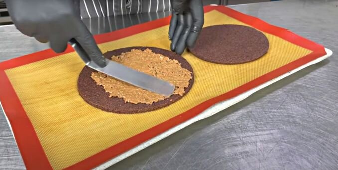 Этап нанесения не менее важен. Хрустящее пралине аккуратно накладывается на бисквит под ягодную начинку. Здесь следует помнить: слой не должен быть слишком толстым, чтобы не затмить основной вкус торта, а также чтобы избежать трудностей при поедании.
