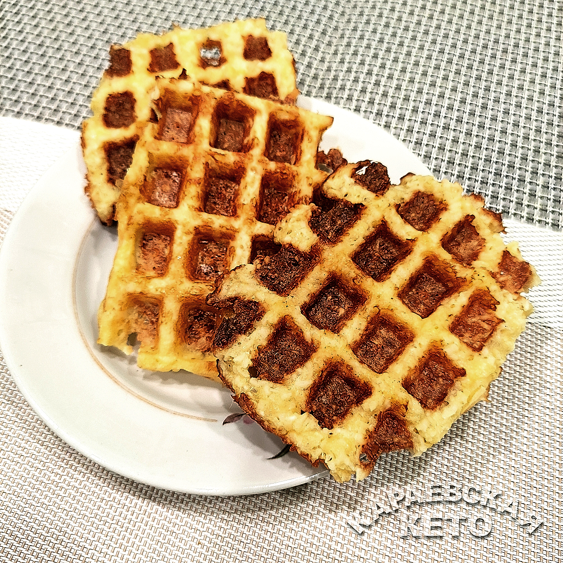 Приготовление этих вафель не займет много времени. Сначала натрите сулугуни на мелкой терке. В глубокой миске смешайте его с кокосовой стружкой и яйцами, добавляя эритрит по вкусу. Получившуюся массу равномерно распределите по вафельнице и выпекайте до золотистой корочки.