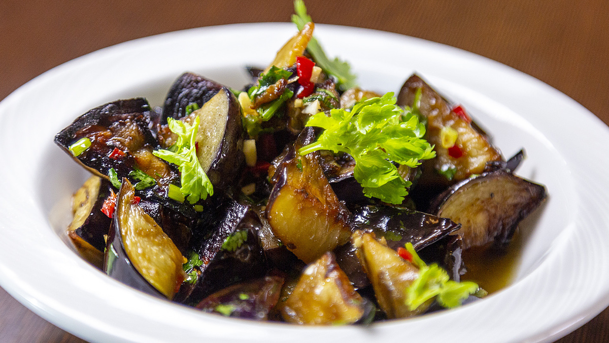 Первым делом, баклажаны следует нарезать и обжарить до золотистой корочки, после чего убрать излишки масла для лёгкости блюда. Далее к баклажанам добавляют мелко нарезанный перец чили, ароматную кинзу, пропущенный через пресс чеснок и всё это смешивается с растительным маслом, соевым соусом и рисовым уксусом или соком лайма. Получившуюся массу тщательно перемешивают, пока ингредиенты не объединятся.