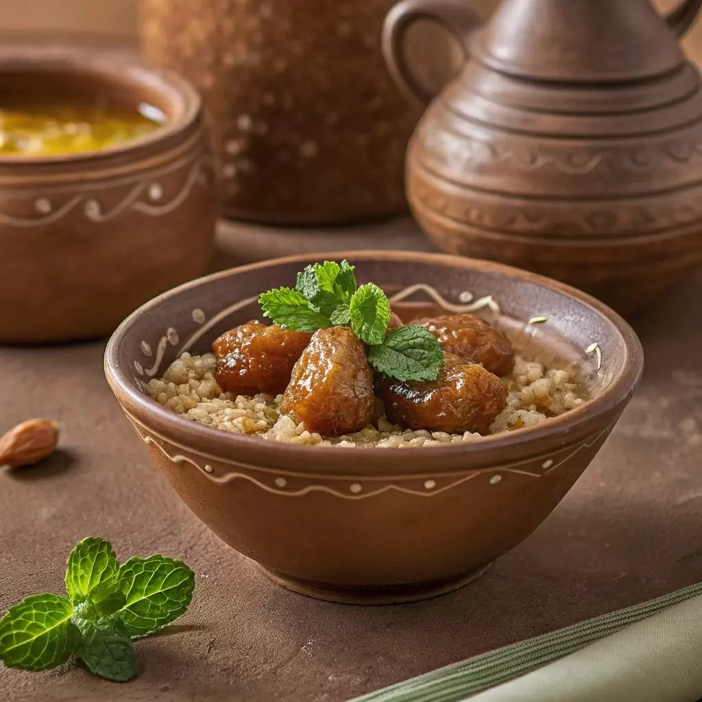 Процесс приготовления несложен: после стирки ячменя его варят до мягкости, добавляют мелко нарезанные финики и остальные ингредиенты. В итоге получается нежный десерт, который можно подавать горячим.