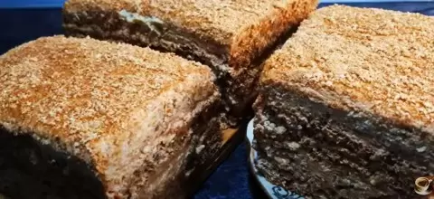 После того как коржи остынут, отрезаются края и превращаются в мелкую крошку для финальной отделки торта. Коржи размером 40 на 30 см делятся пополам, а для пропитки используется вареная сгущенка, разведенная с небольшим количеством воды. Торт собирается следующим образом: каждый из четырех коржей слои промазываются приготовленным кремом и обсыпаются крошкой. Итоговый результат – торт размером 30 на 20 см и высотой около 8,5 см, что делает его не только аппетитным, но и достойным украшением любого торжества.
