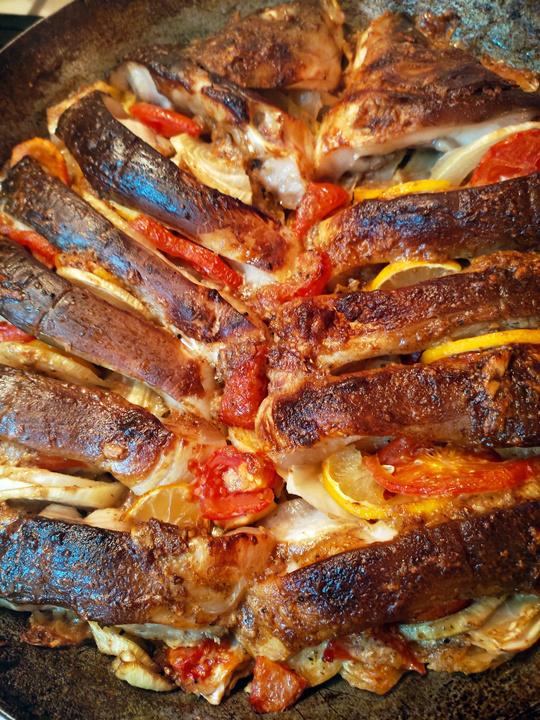Между кусками карпа можно разместить ломтики лука, лимона и помидоров — это добавит блюду свежести и яркости. Накройте всё фольгой и отправьте в заранее разогретую до 180°C духовку. Пеките около 50 минут, чтобы капуста хорошо пропарилась. Затем снимите фольгу и доведите рыбу до румяной корочки.