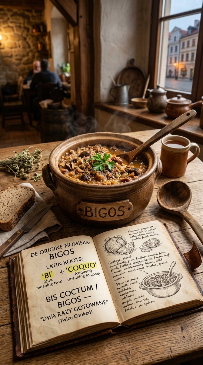 Одной из самых увлекательных версий о происхождении названия является связь с латинскими словами. Считается, что «бигос» может быть образован от латинских «bis» (дважды) и «gustus» (вкус), что в свою очередь можно трактовать как «двоевкусие». Этот подход отражает уникальную композицию блюда, которое сочетает в себе свежую белокачанную и квашеную капусту, создавая гармоничное смешение вкусов — от сладковатости свежей капусты до характерной кислинки квашеной.