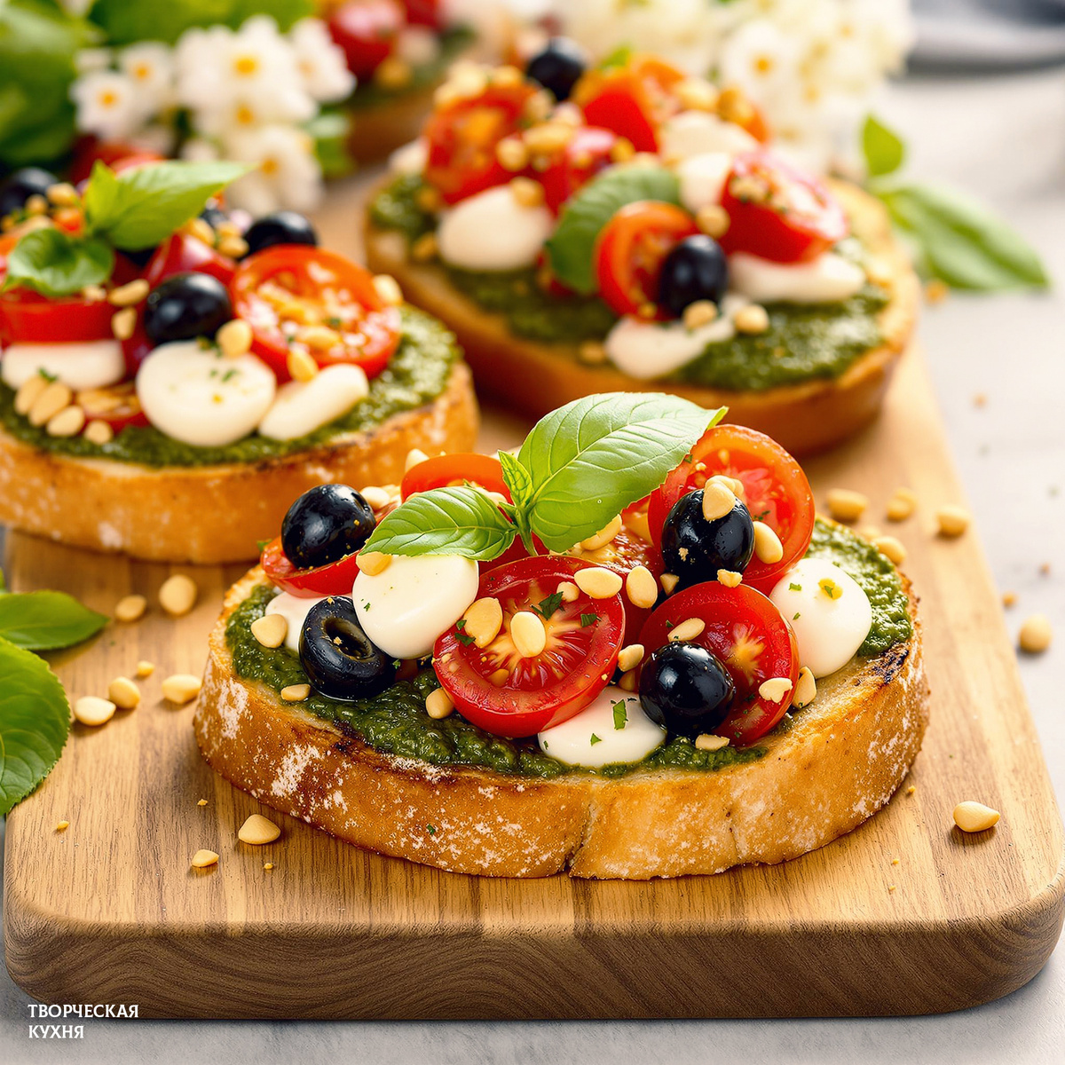 Используйте только высококачественное оливковое масло, чтобы подчеркнуть вкус брускетт. Готовьте с душой – это не только принесёт удовольствие вам, но и сделает ваше блюдо по-настоящему особенным. Эти брускетты идеальны как для закусок на вечеринках, так и для романтического ужина за свечами.